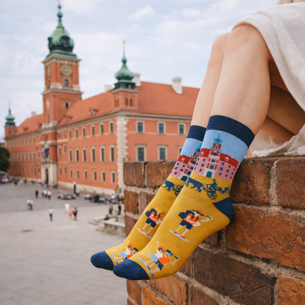 Kolorowe skarpety damskie z kolekcji I LOVE POLAND , w zestawie 6 par skarpet WARSZAWA - ZAMEK KRÓLEWSKI .